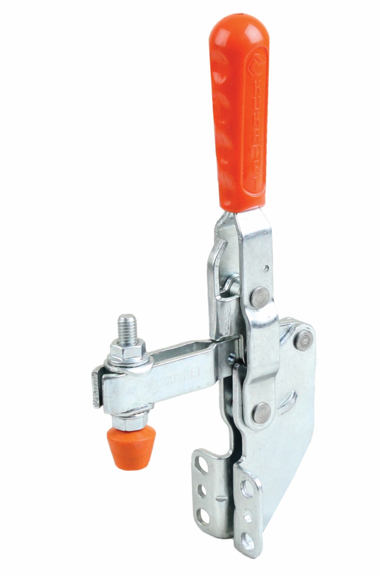 Dociski szybkomocujące pionowe oraz poziome z otwartym zaciskaczem i z poziomą lub pionową podstawą.
