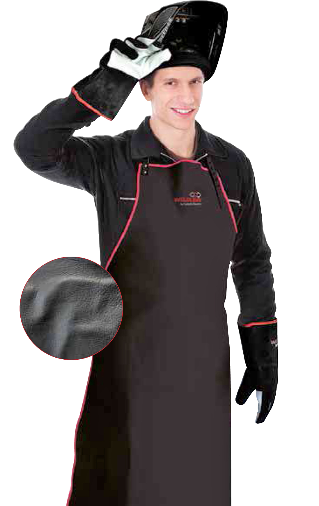 Długi skórzany ochraniacz szyi - czarny: pasuje do wszystkich przyłbic z serii HELIX, panoramaxx, sphere, liteflip, crystal, e684, e650, e640, e670, b600, g300, vegaview, p550 (neo), p330, p505, e680 i Clearmaxx oraz wszystkich z aparatem filtracyjno-nadmuchowym e3000 (PAPR)