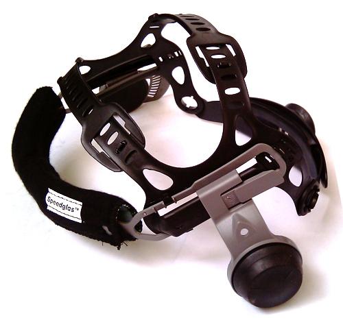 Czarne nagłowie do użytku profesjonalnego wyposażone w śruby mocujące do przyłbic serii Speedglas 9100.