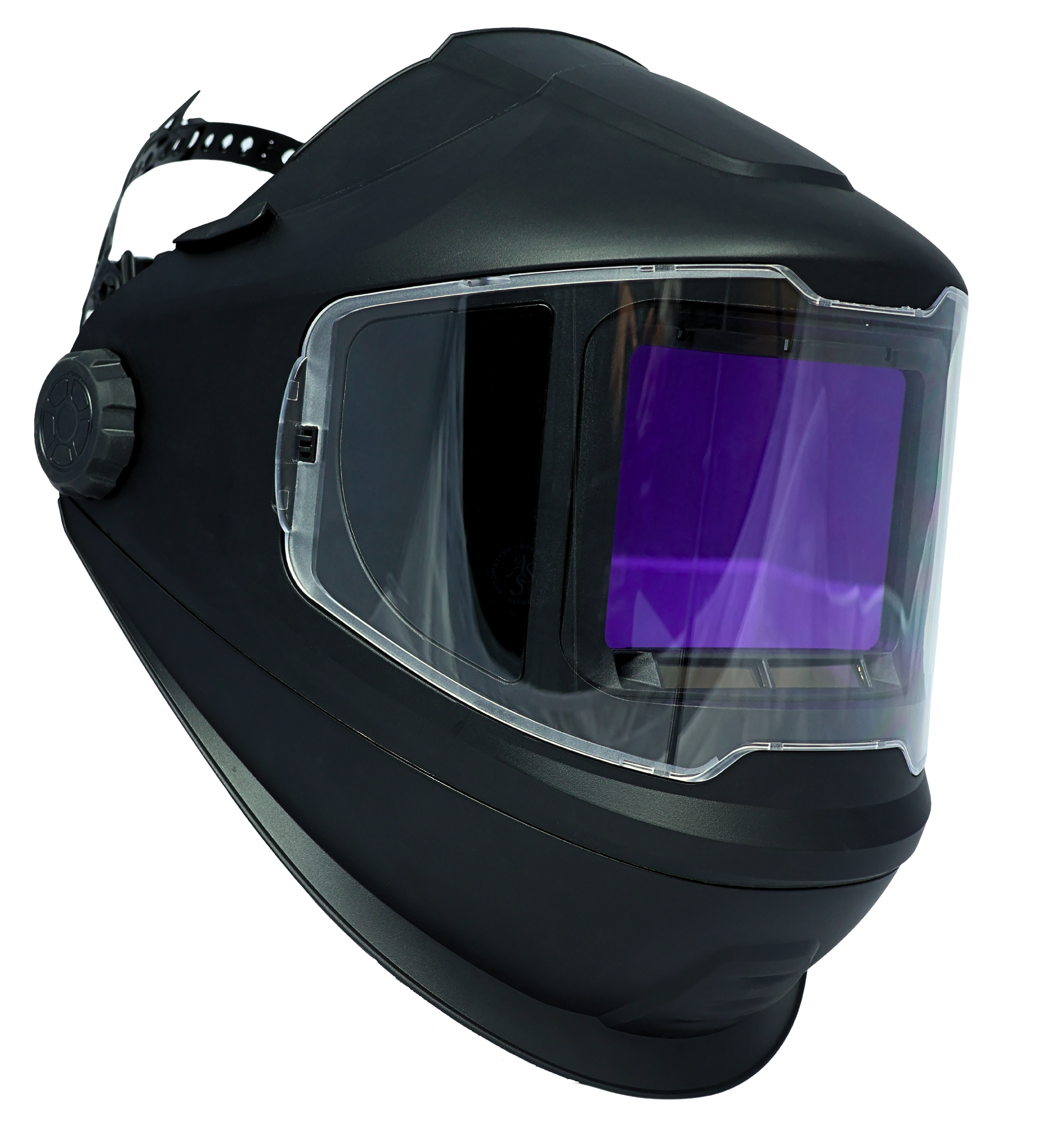 Przyłbica FS1 posiada po bokach filtra spawalniczego dwa wizjery pasywne, które tworzą panoramiczny widok stanowiska pracy. Dzięki temu, zapewnia szeroki kąt widzenia, co pozwala na swobodną obserwację całej strefy spawania, eliminując martwe punkty i zwiększając precyzję i bezpieczeństwo pracy.