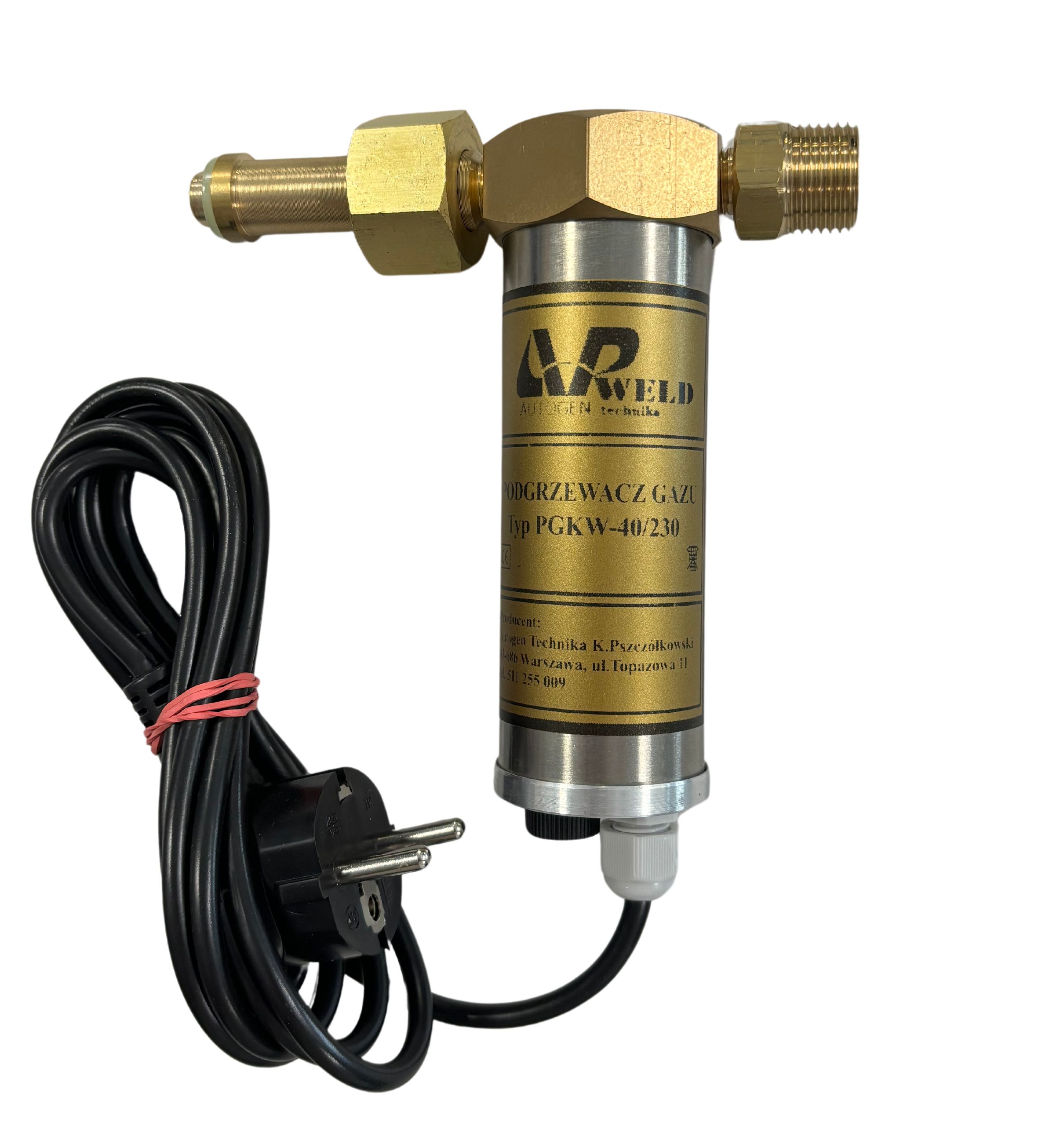 Podgrzewacz służy do podniesienia temperatury dwutlenku węgla w celu zapobiegnięcia zamarznięcia reduktora lub elektrozaworu w spawarce