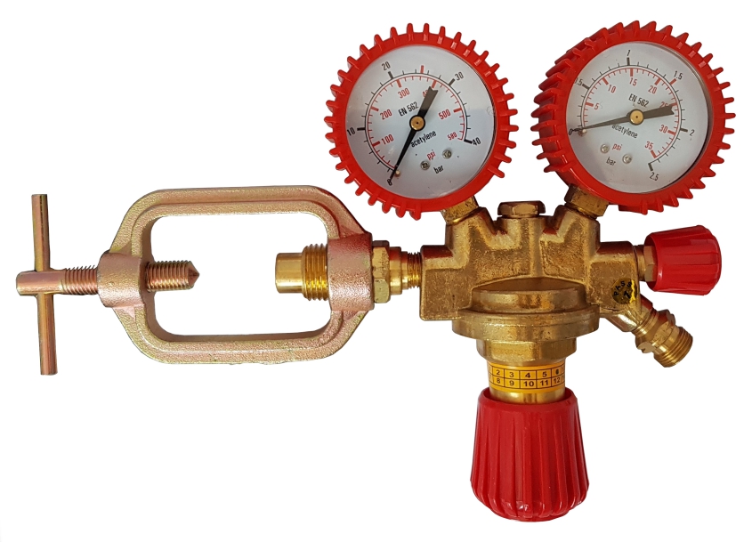 Jednostopniowy reduktor ciśnienia do butli gazowej. Odpowiedni do acetylenu. Urządzenie obniża ciśnienie gazu na wylocie reduktora. Posiada pokrętło umożliwiające regulację ciśnienia wylotowego do żądanego.