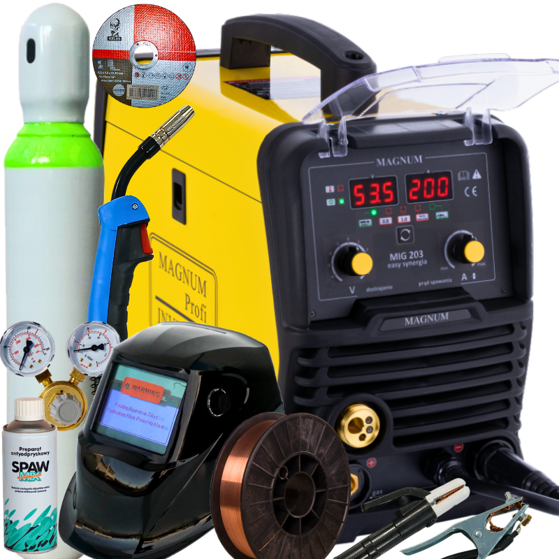 Spawarka inwertorowa Magnum MIG 203 Easy Synergia zestaw