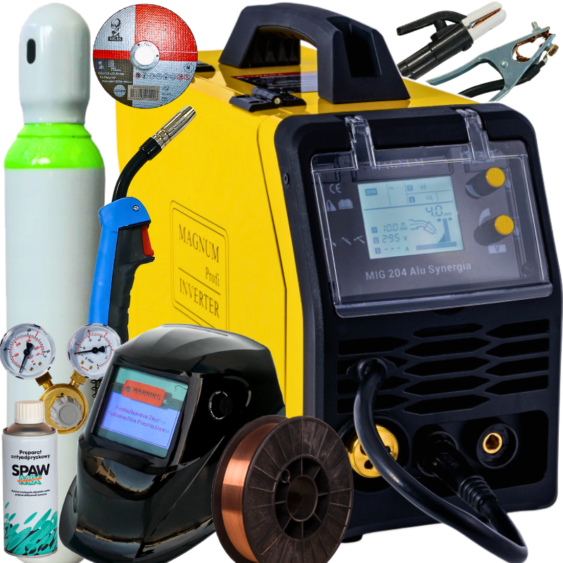 Spawarka inwertorowa Magnum MIG 204 ALU SYNERGIA zestaw