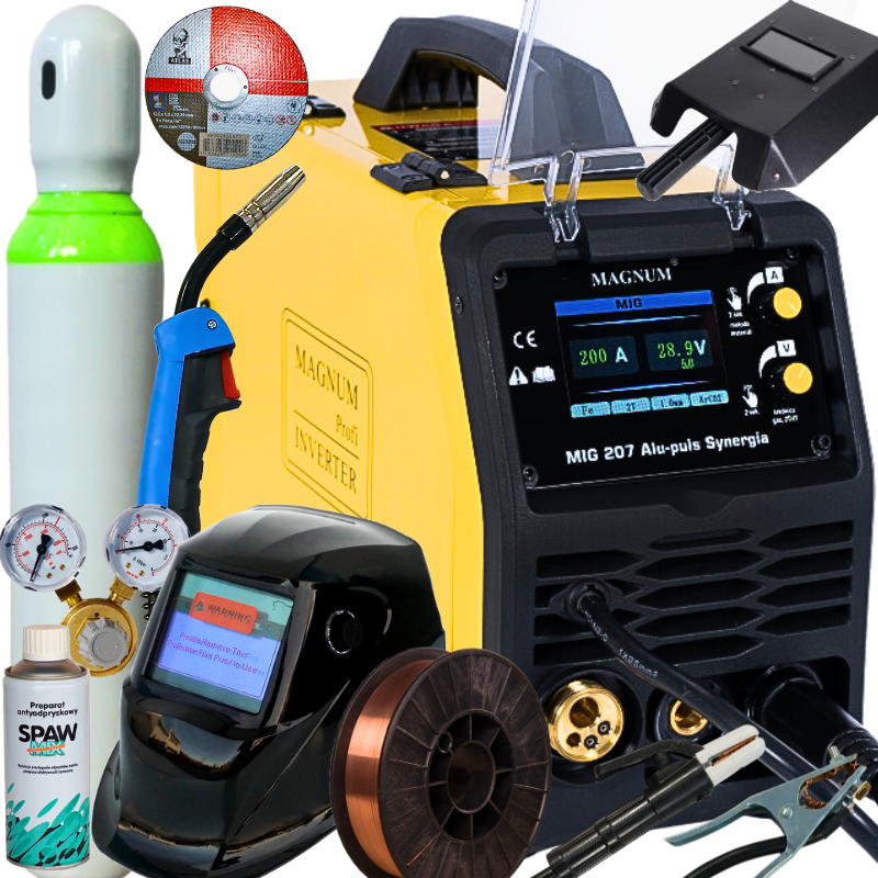 Spawarka inwertorowa Magnum MIG 207 ALU-PULS SYNERGIA zestaw