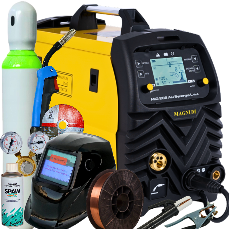 Spawarka inwertorowa Magnum MIG 208 ALU SYNERGIA L 4X4 zestaw