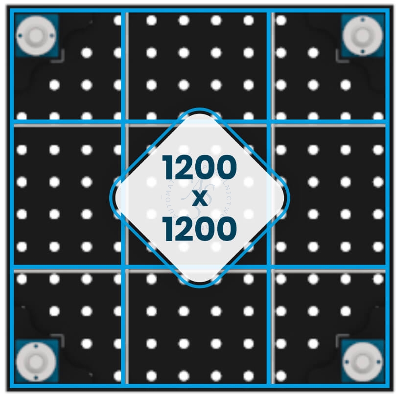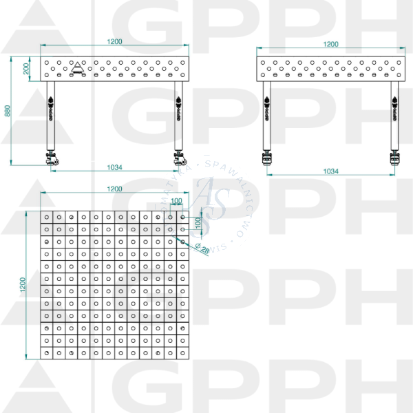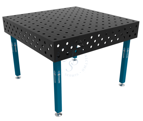 Blaty stołów GPPH ECO mają grubość 8mm, posiadają gęste ożebrowanie, co wpływa na idealnie płaską powierzchnię roboczą. Stół o wymiarze 1200×1200 mm ma 2 żebra wzdłużne i 2 żebra podłużne. Masywna i sztywna podbudowa blatu stołu gwarantuje najwyższą stabilność podczas użytkowania oraz zabezpieczenie przed odkształceniem. Tolerancja płaskości stołu na całym blacie wynosi ±0,5 mm, a tolerancja wykonania otworów stołu spawalniczego wynosi ±0,1 mm.