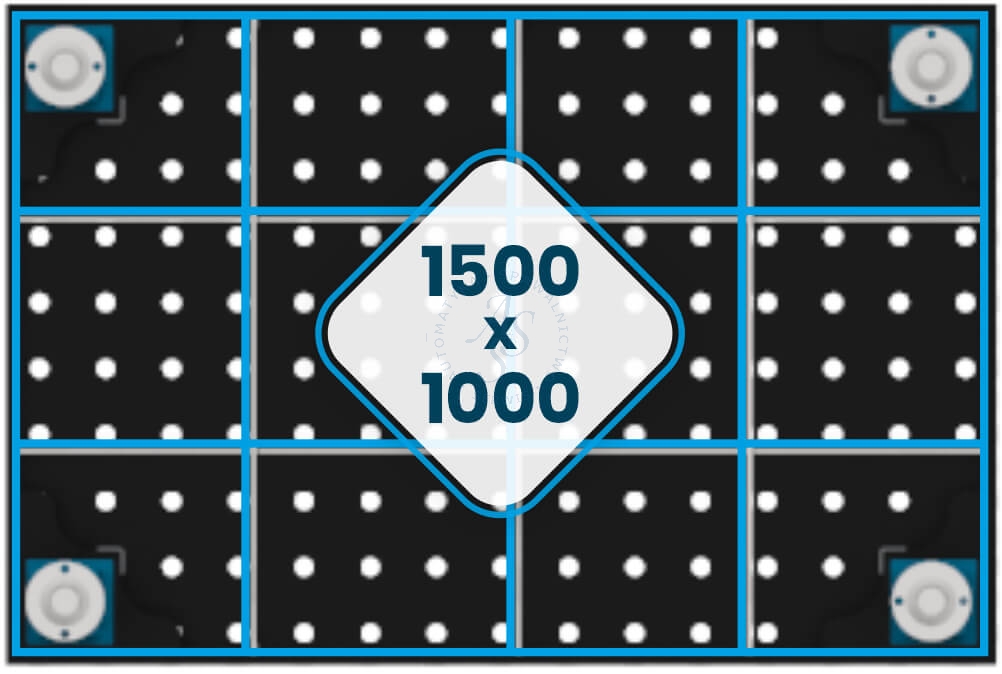Grawerowana podziałka blatu stołu to pionowe i poziome linie w siatce 100x100mm. Jest ona punktem odniesienia przy układaniu konstrukcji i podczas montażu narzędzi.