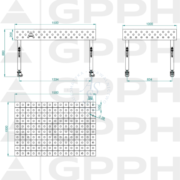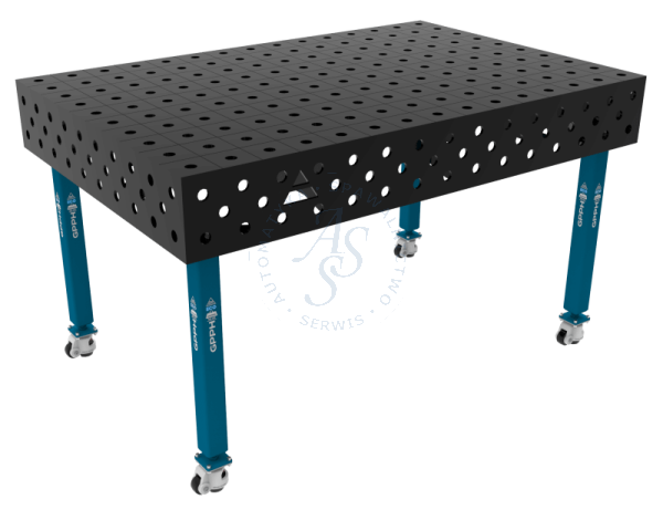 Blaty stołów GPPH ECO mają grubość 8mm, posiadają gęste ożebrowanie, co wpływa na idealnie płaską powierzchnię roboczą. Stół o wymiarze 1500×1000 mm ma 2 żebra wzdłużne i 3 żebra podłużne. Masywna i sztywna podbudowa blatu stołu gwarantuje najwyższą stabilność podczas użytkowania oraz zabezpieczenie przed odkształceniem. Tolerancja płaskości stołu na całym blacie wynosi ±0,5 mm, a tolerancja wykonania otworów stołu spawalniczego wynosi ±0,1 mm.